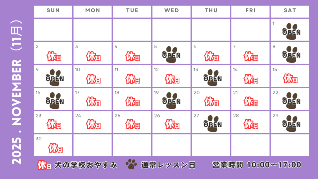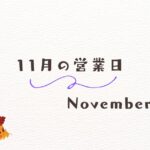 さて、11月の営業日のご案内です。来月は、週2~3回の営業となります